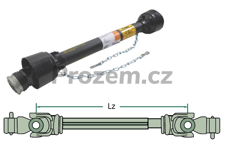 Lz=1210mm (délka kloubové hřídele v zasunuté poloze na středý kardanových kloubů), konstrukční řada PTO 10, profilové párování PTO 10, provedení pro traktor 1 3/8" 6 zubů a pro stroj 1 3/8" 6 zubů.