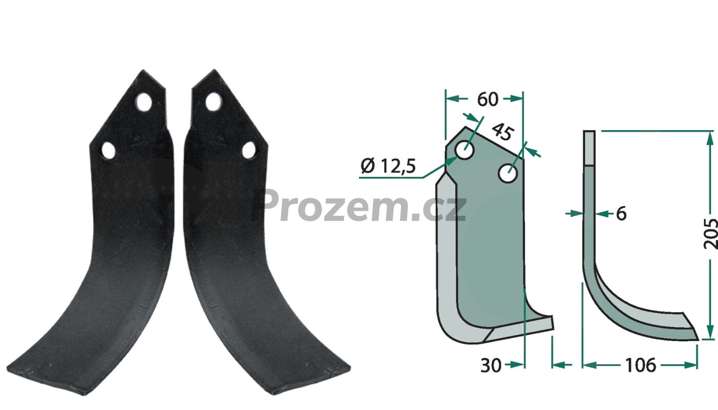 Frézovací klenutý nůž pravý pro Nardi, 5C5009, 45/12,5/205 mm