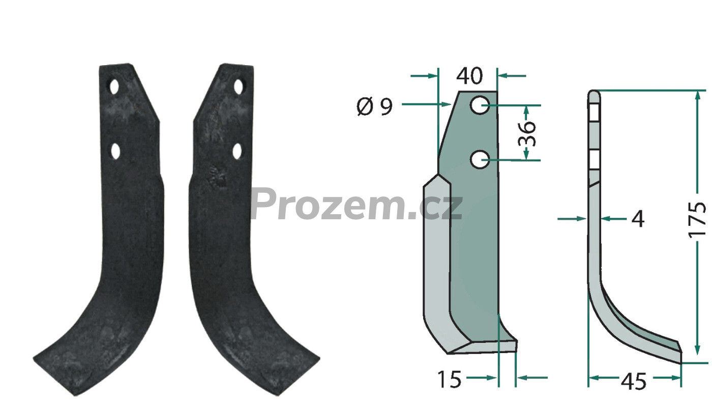 Frézovací klenutý nůž pravý pro Tielbürger, KB001005, 36/9/175 mm