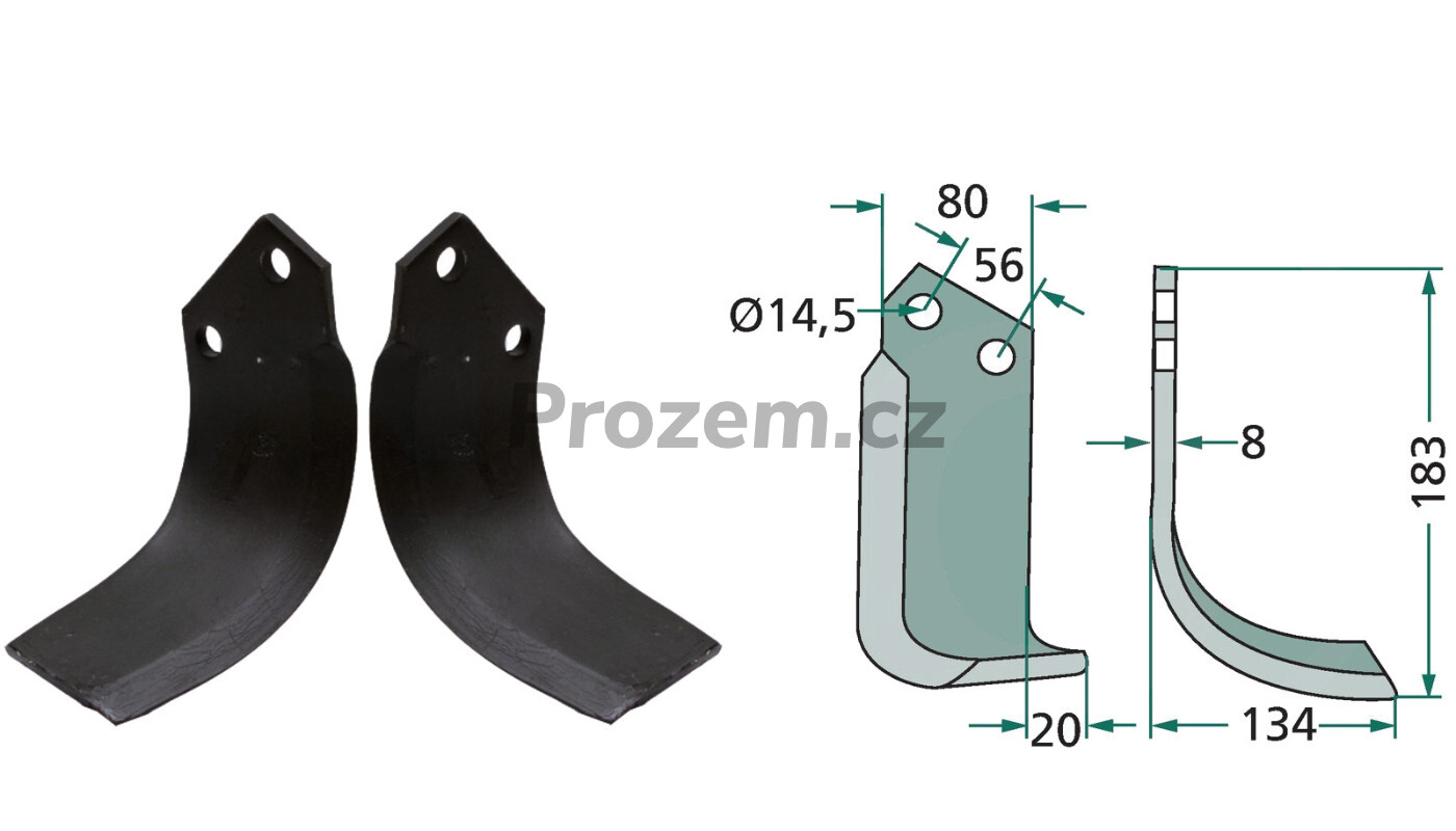 Frézovací klenutý nůž pravý pro Tortella, 2985204, 56/14,5/183 mm