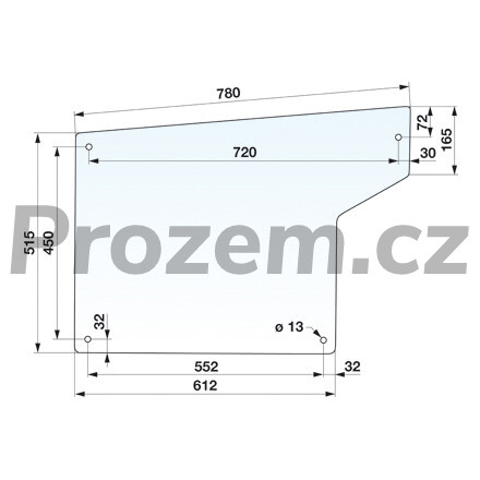 Sklo dveří horní, zadní díl pro Case IH, 1284789C1