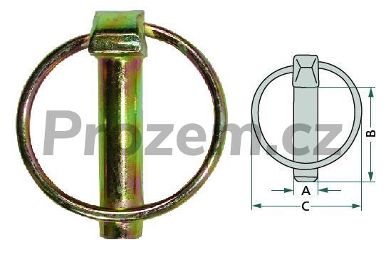 Pozinkovaná Sklopná závlačka Ø 8 mm. Sklopná závlačka A- 8mm, B- 41mm, C- 47mm, standardní provedení.