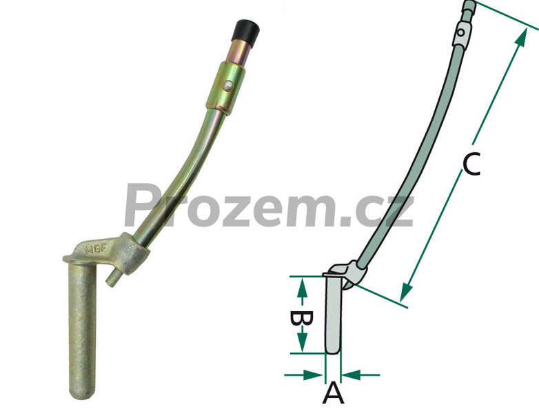 Závěsový kolík Deutz Ø 31mm, 150 x 790 mm, zahnutá tažná rukojeť. Závěsový kolík pro závěsy značky Deutz, průměr kolíku (rozměr A) 31 mm, délka kolíku (rozměr B) 150 mm, délka rukojeti (rozměr C) 790 mm.